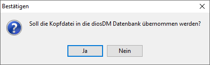 Es folgt die Abfrage, ob die Kopfdatei in die Datenbank des Programms übernommen werden soll.