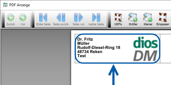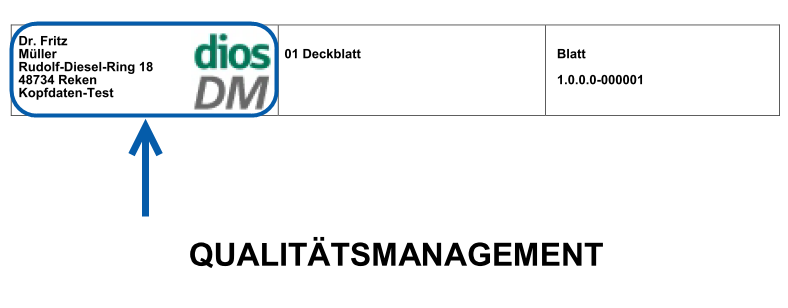 Die Daten im Dokumentenkopf stammen aus den Lizenz- und den veränderbaren Kopfdaten der Praxis.