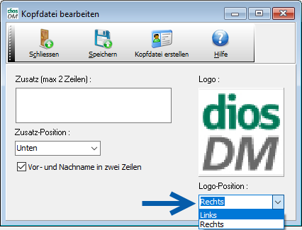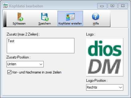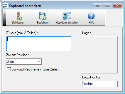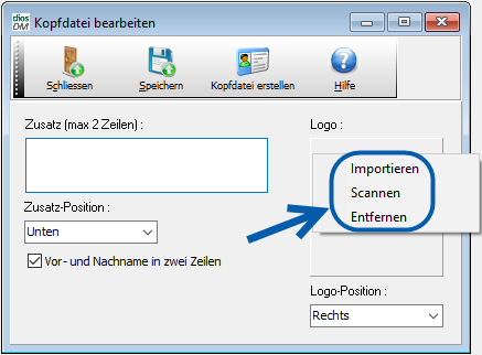 Bilder und Logos im Dateiformat .jpg können in die Kopfdatei importiert werden.