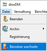 Der angemeldete Benutzer kann jederzeit gewechselt werden. Klicken Sie dazu den Auswahlpunkt Benutzer wechseln im Menüpunkt Datei an.