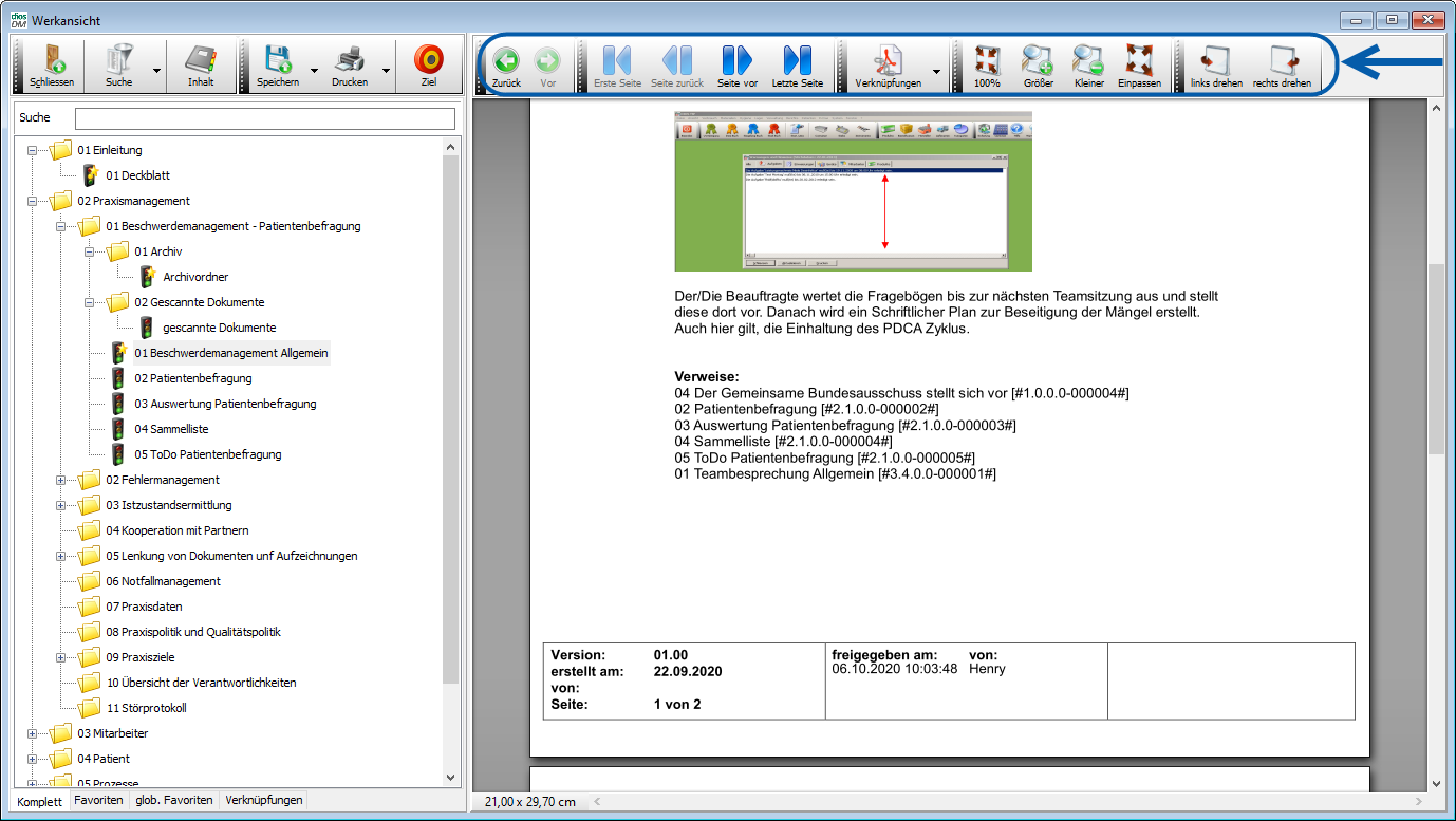 Zur Ansicht der freigegebenen Werkdokumente stehen in der rechten Fensterhälfte die folgenden Buttons zur Verfügung: