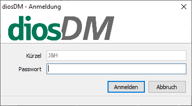 Geben Sie im folgenden Anmeldungsfenster Ihr Kürzel und Passwort ein.