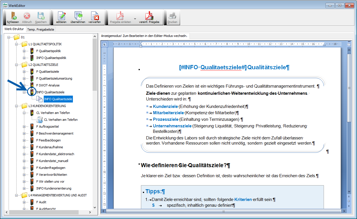 Anschließend suchen Sie das Dokument in der Ordnerstruktur, welches die Verknüpfung zu dem gerade ausgewählten Dokument beinhalten soll. Öffnen Sie die Ordner-Ebene unter der Ampel und wechseln Sie in den Word-Bearbeitungsmodus. Hier fügen Sie die Verlinkung durch das Rechte-Maustastenmenü, Auswahlpunkt Einfügen oder der Tastenkombination Strg+V an der von Ihnen gewünschten Stelle ein. Die Änderungen müssen anschließend gespeichert, übernommen und wieder freigegeben werden.