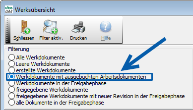 Über den Menüpunkt Berichte, Auswahlpunkt Übersicht Dokumente gelangt man in das Fenster Werksübersicht.