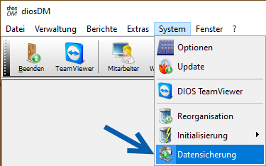 Um die Daten über das Programm zu sichern, wählen Sie im Menüpunkt System den Auswahlpunkt Datensicherung.