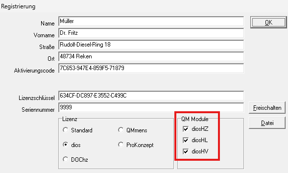 neue Lizenzen zu diosHZ, diosHL, diosHV