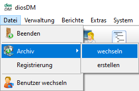 Werden die Archivdaten angezeigt, sind die Module Mitarbeiter, Werkeditor und Posteingang deaktiviert