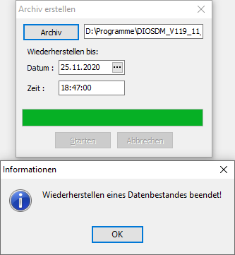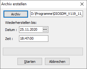 Archivdaten können zu jedem beliebigen Zeitpunkt in der Vergangenheit erstellt werden. Geben Sie dazu ein vergangenes Datum ein und klicken anschließend auf den Button Starten.
