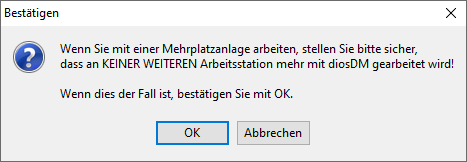 Bestätigen Sie in den folgenden Fenstern, dass an keiner weiteren Arbeitsstation mehr mit dem Programm gearbeitet wird.